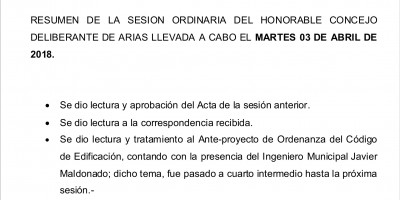 Resumen Sesion Ordinaria Martes 3 de Abril