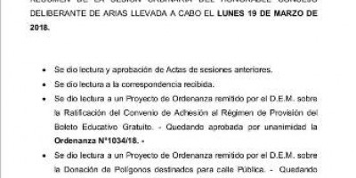 Apertura de sesiones 2018 Honorable Concejo Deliberante, Municipalidad de Arias.
