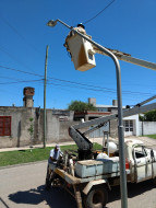 Según lo establece la ley, se están colocando todas las descargas a tierra en el alumbrado público, para mayor seguridad de la población y del equipamiento ya que evita las sobrecargas de tensión, a la vez que se están reemplazando las lámparas de sodio por las de tecnología LED, hasta completar el 100% de la Localidad.