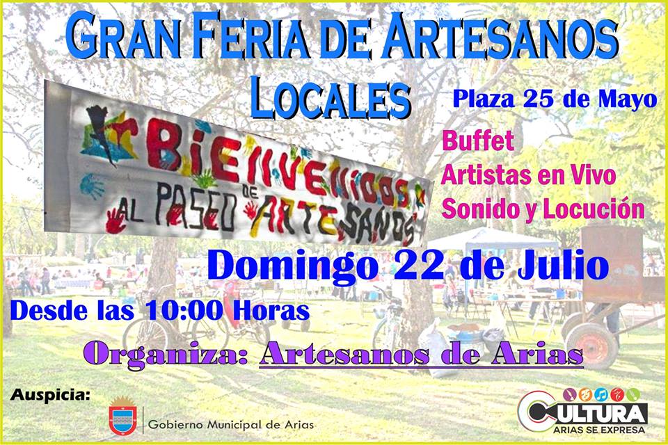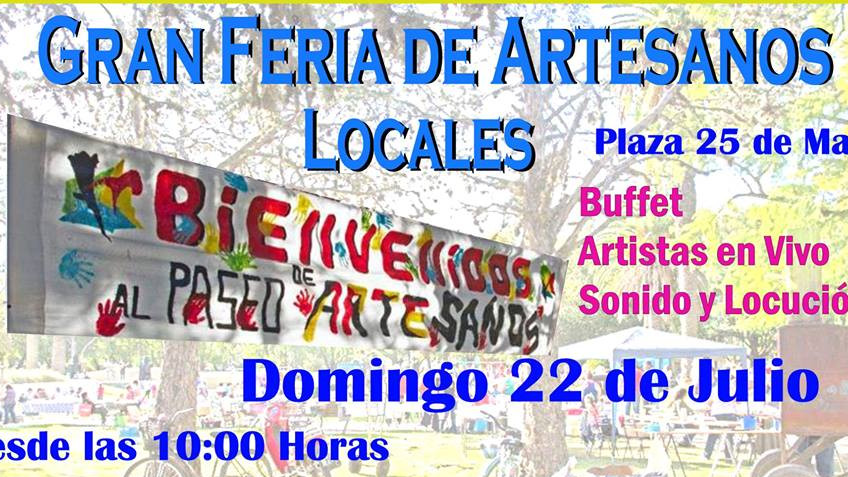 Una nueva Feria de Artesanos Locales tendrá lugar este domingo 22 de julio en la plaza 25 de Mayo de nuestra Localidad, una oportunidad para conocer y adquirir producción y mano de obra artesanal y local, además de contar con servicio de bufet, habrá artistas en vivo y sorteos, desde las 10:00 de la mañana para compartir una jornada al aire libre.