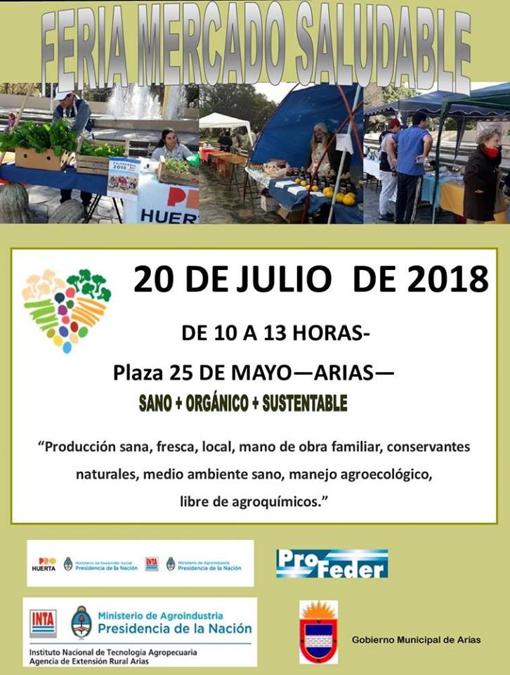 Una nueva edición de la Feria Mercado Saludable tendrá lugar este viernes, si el tiempo lo permite, en la plaza local, frente a la fuente, donde coinciden distintos emprendedores ofreciendo productos de mano de obra local, familiar, artesanal, con conservantes naturales, producción sana, fresca, con manejo agroecológico para un medio ambiente sano, recordamos que esta feria se viene realizando cada quince días en el mismo lugar y cuenta con muy buena aceptación por parte de los vecinos, que concurren a adquirir los productos ofrecidos.