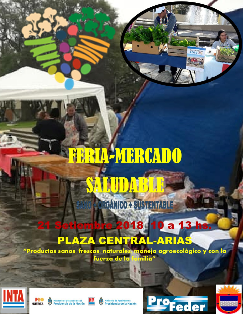 Una nueva edición de La Feria Mercado Saludable, tendrá lugar en la plaza 25 de Mayo, cuando productores Locales vuelvan a coincidir este viernes 21 de septiembre, para ofrecer productos, frescos, mano de obra local, sano, rico y saludable, con la fuerza de la familia, recordamos que estas ferias se realizan cada 15 días y cuentan con el auspicio del Gobierno Municipal de Arias