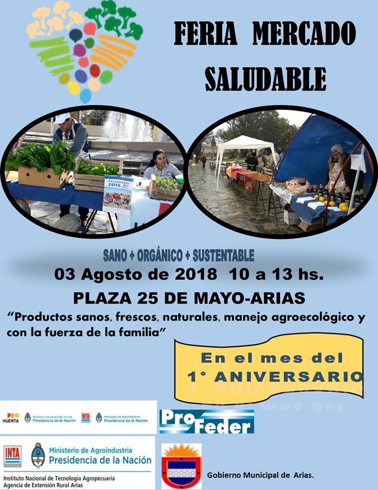 Una nueva edición de la Feria Mercado Saludable tendrá lugar este viernes, si el tiempo lo permite, en la plaza local, frente a la fuente, donde coinciden distintos emprendedores ofreciendo productos de mano de obra local, familiar, artesanal, con conservantes naturales, producción sana, fresca, con manejo agroecológico para un medio ambiente sano, recordamos que esta feria se viene realizando cada quince días en el mismo lugar y cuenta con muy buena aceptación por parte de los vecinos, que concurren a adquirir los productos ofrecidos.