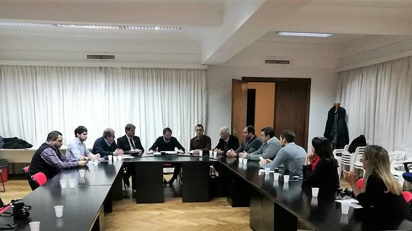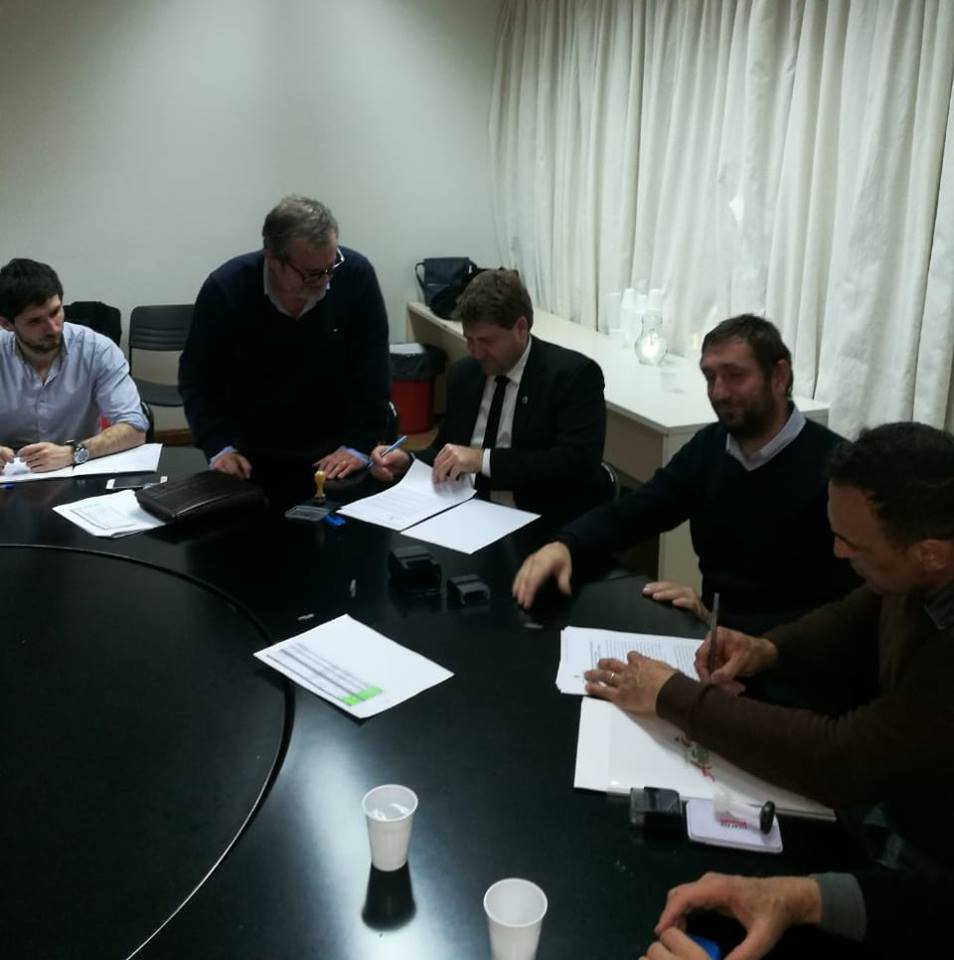 Firma del Convenio "Proyecto Ejecutivo Desagües Cloacales" en Buenos Aires, con el Lic. Fernando Álvarez de Celis, para realizar el estudio de factibilidad de esa obra.