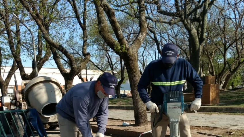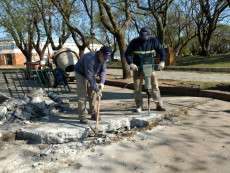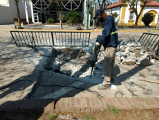 La Municipalidad continúa realizando reparaciones y mantenimientos en distintos puntos de la localidad, en éste caso en la playa de estacionamiento de calle Córdoba, frente a Bancor .
