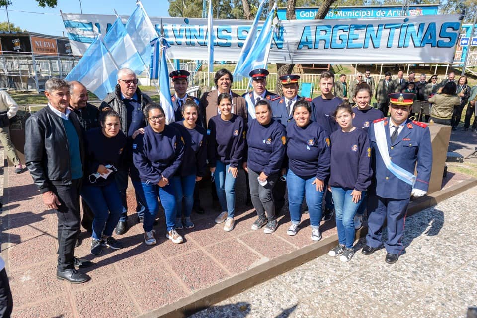 Se realizó el acto el día 2 de abril, a las 10:00 horas en la plazoleta "Héroes de mi Pueblo", fue una semana de muchas actividades por el aniversario número 40 de la gesta de Malvinas: Muestra de fotos y de objetos, charlas, visita de los centros educativos, presentación de la obra de teatro: "Por mi Patria", por el grupo municipal de teatro y el recibimiento a los veteranos por parte del honorable Concejo deliberante de Arias, los cuales mediante una ordenanza, establecieron el nombre de tres calles de Arias con los nombres de ex combatientes de Malvinas.