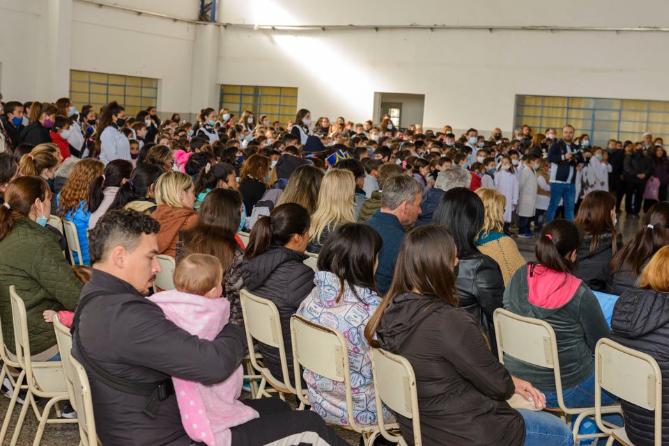 Acto del día de la bandera, organizado por el por los centros educativos de nivel medio de la localidad, con la presencia del intendente municipal, integrantes del Concejo deliberante y veteranos de Malvinas, además del diploma de promesa de lealtad a la bandera, los alumnos de 4to grado, recibieron una copia de nuestra Constitución Nacional.
