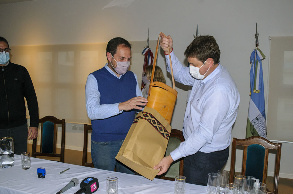 El Intendente Municipal Matías Gvozdenovich, recibió junto al presidente del Honorable Concejo Deliberante: Martín Bongiovanni y los concejales: Lorena Cuello, Silvia Contadino y María Del Carmen Laviola, al Secretario de obras públicas de la Nación: Martín Rodrigo Gill y a intendentes de la zona, momento en el cual se realizó la firma de un convenio para la realización de la obra de agua potable que comprende el sector Este de nuestra Localidad, desde Avda. San Martín y de Norte a Sur en su totalidad.