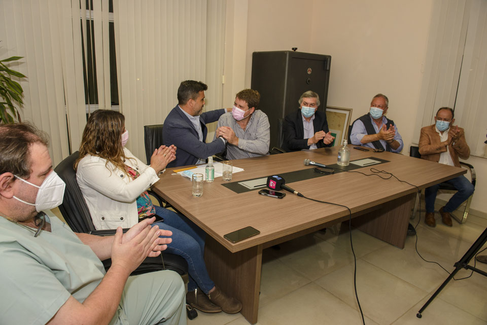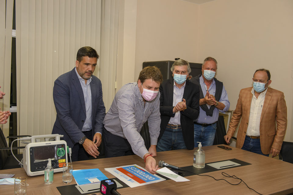 Entregaron a la municipalidad un aporte económico FOCOM, por $ 2.000.000 para obras de pavimentación, un subsidio para el hospital por $ 300.000 y un equipo cardiodesfibrilador.